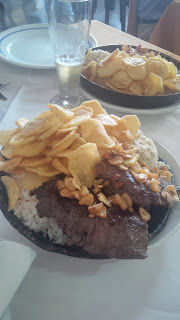 Chegando lá a pedida certa é o Filé, que acompanha muito bem com aquela cervejinha gelada, a famosa "canela de pedreiro" o prato acompanha um filé alto bem suculento(melhor que eu já comi) arroz branco, farofa, batata portuguesa e claro o alho torrado em cima do filé, depois de comer tudo isso e beber essa cerveja tive que voltar andando pro trabalho, meu amigo, vou te falar que eu quase peguei um táxi dali mesmo pra casa!